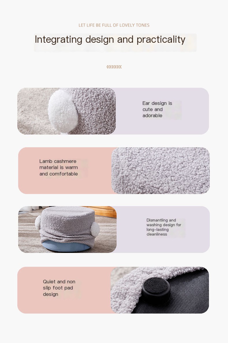 Made with a removable and washable cloth cover, our stool is available in three stunning colors: White, Pink, and Gray. Its lightweight design, weighing just 1.291 kg, makes it easy to move around your home, adapting to your needs with ease.